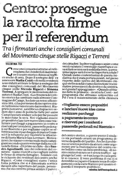 Centro: prosegue la raccolta firme per il referendum - Metropoli, 13 settembre 2013