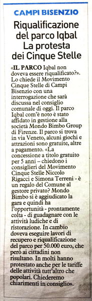 Riqualificazione del parco Iqbal - La protesta dei Cinque Stelle - La Nazione, 30 luglio 2015