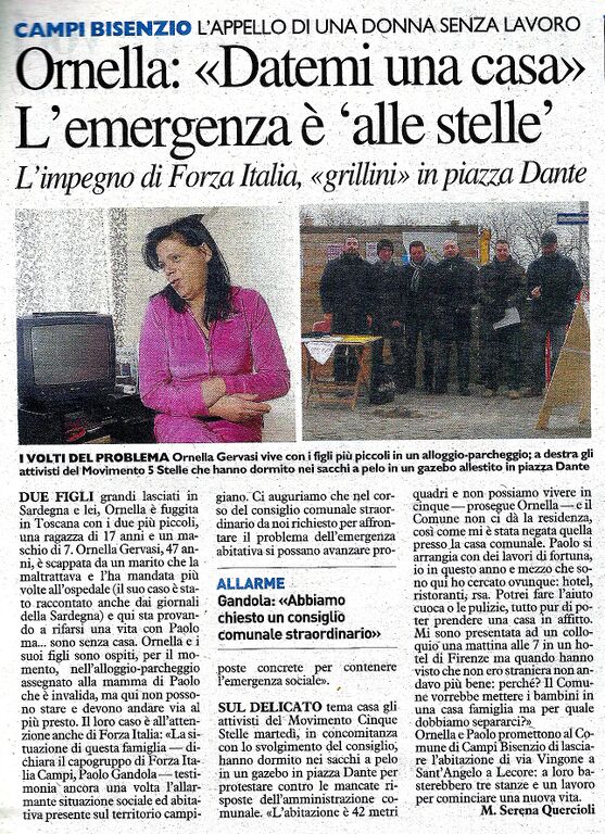 Ornella: "Datemi una casa" L'emergenza è alle stelle - La Nazione - 30 gennaio 2014