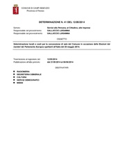 Determinazione locali e costi per la concessione di sale del Comune in occasione delle Elezioni dei membri del Parlamento Europeo spettanti all'Italia del 25 maggio 2014.