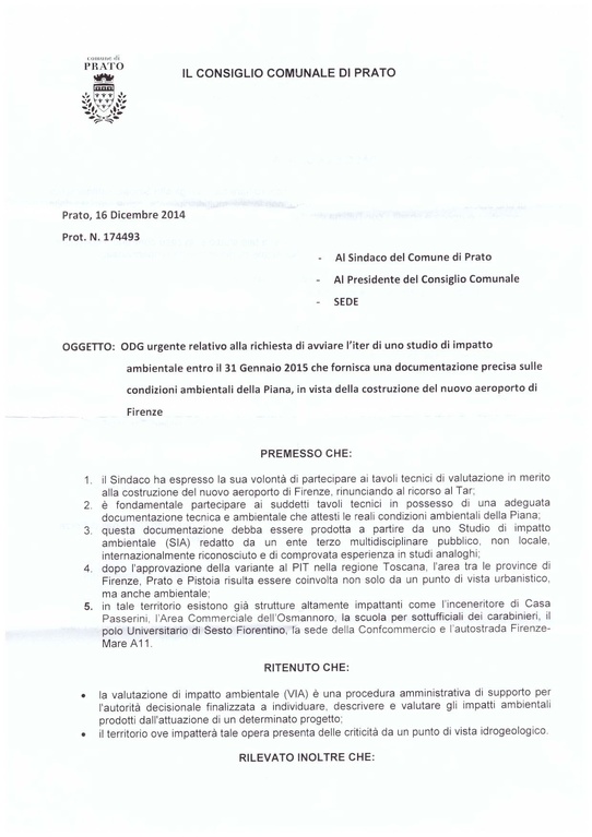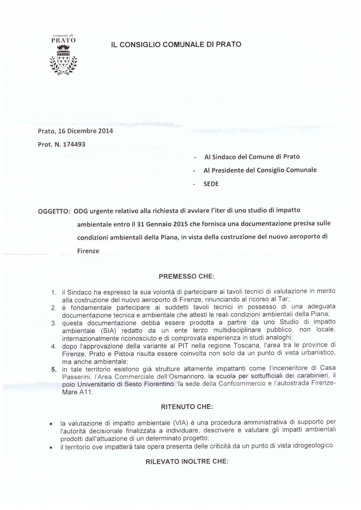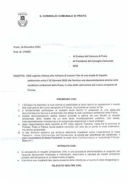 Ordine del Giorno per uno Studio di Impatto Ambientale - Comune di Prato - 16 dicembre 2014