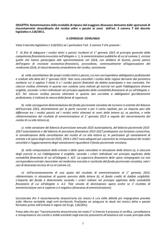 Versione del 10 giu 2015 alle 13:30 di Niccolo Rigacci (discussione | contributi) (Determinazione delle modalità di ripiano del maggiore disavanzo derivante dalle operazioni di riaccertamento straordinario dei residui attivi e passivi ai sensi dell’art. 3 comma 7 del decreto legislativo n.118/2011. - Consiglio comunale di Campi Bi...)