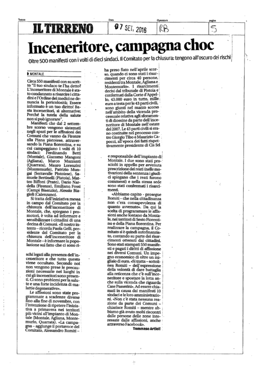 Inceneritore, campagna choc - Il Tirreno, 7 settembre 2016