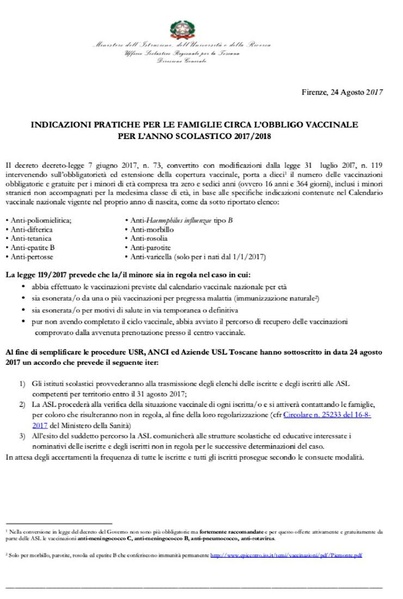 Documenti allegati all'interrogazione circa l'applicazione del D.L. n.73 del 07/06/2017 (decreto “vaccini”, convertito in legge n.119 del 31/07/2017) nelle scuole di Campi Bisenzio.