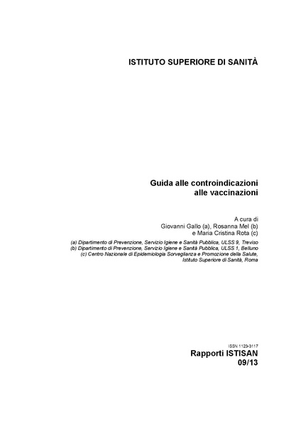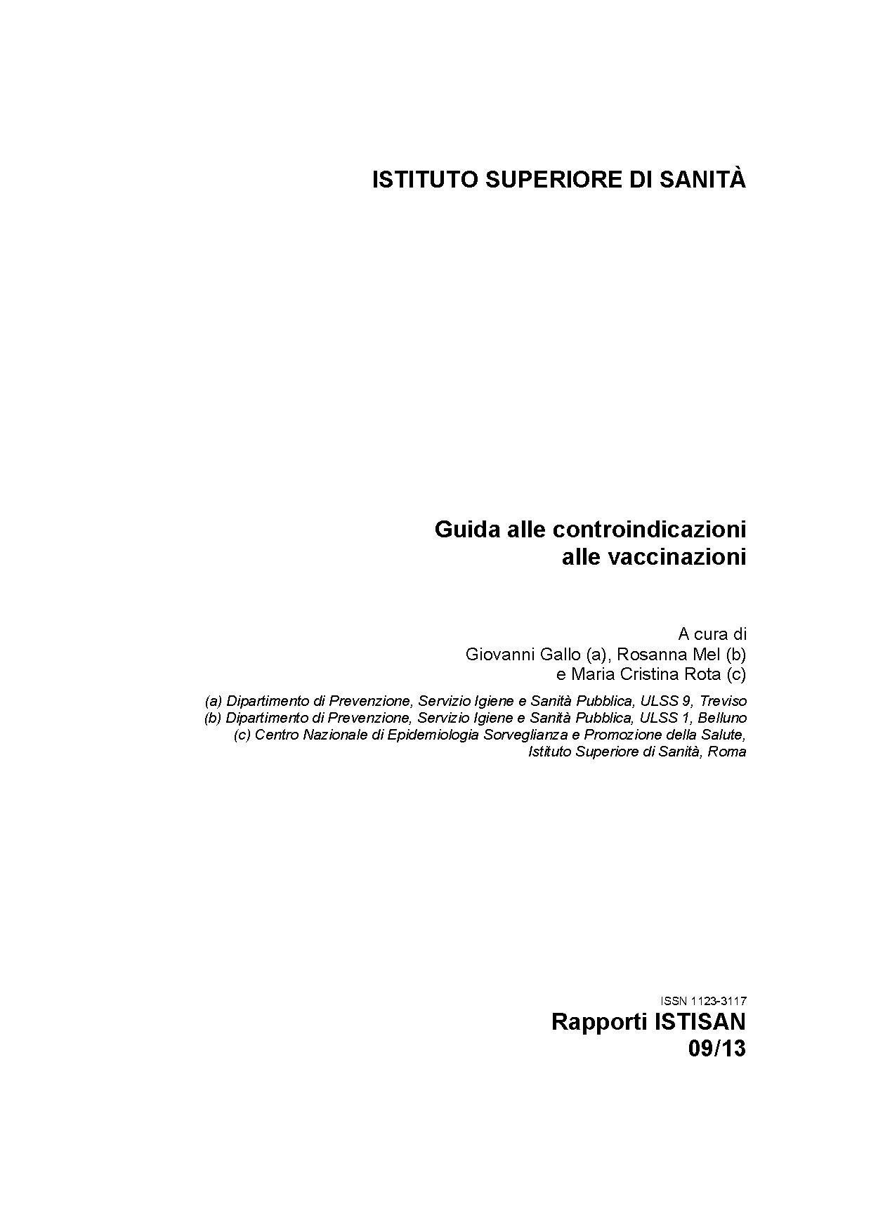 ISTITUTO SUPERIORE DI SANITÀ - Guida alle controindicazioni alle vaccinazioni - A cura di Giovanni Gallo, Rosanna Mel e Maria Cristina Rota