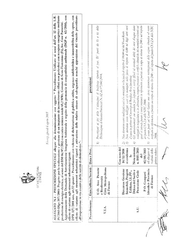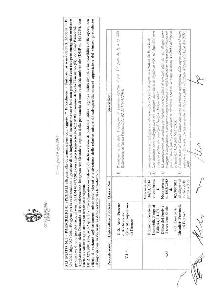 Progetto per la realizzazione e gestione di un impianto di incenerimento rifiuti non pericolosi con recupero energentico, Comune di Sesto Fiorentino, Loc. Case Passerini - Conferenza dei Servizi - Verbale della seduta del 6 agosto 2015