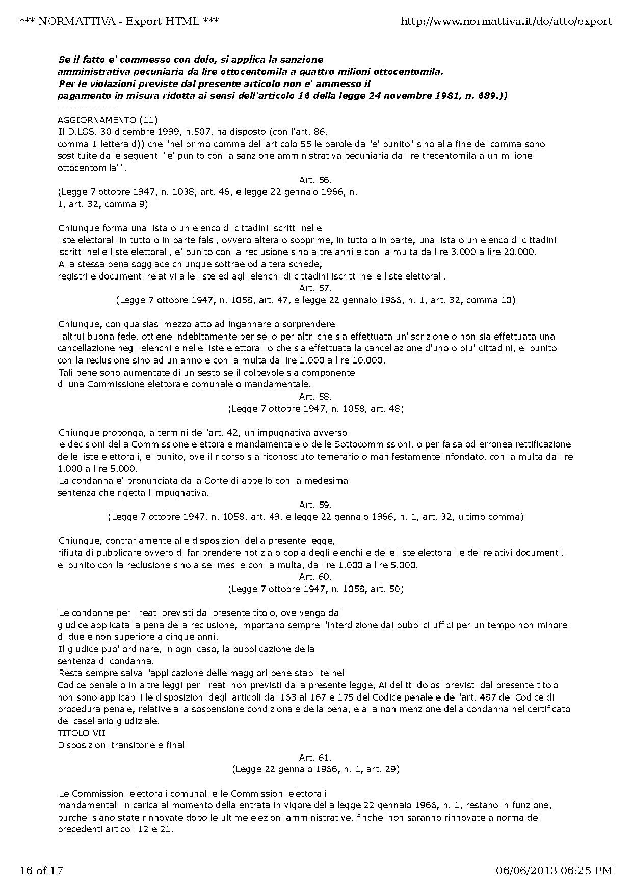 Decreto Presidente della Repubblica 20 marzo 1967, n. 223 Testo unico delle leggi per la disciplina dell'elettorato attivo e per la tenuta e la revisione delle liste elettorali - http://www.normattiva.it/uri-res/N2Ls?urn:nir:stato:legge:1967-03-20;223