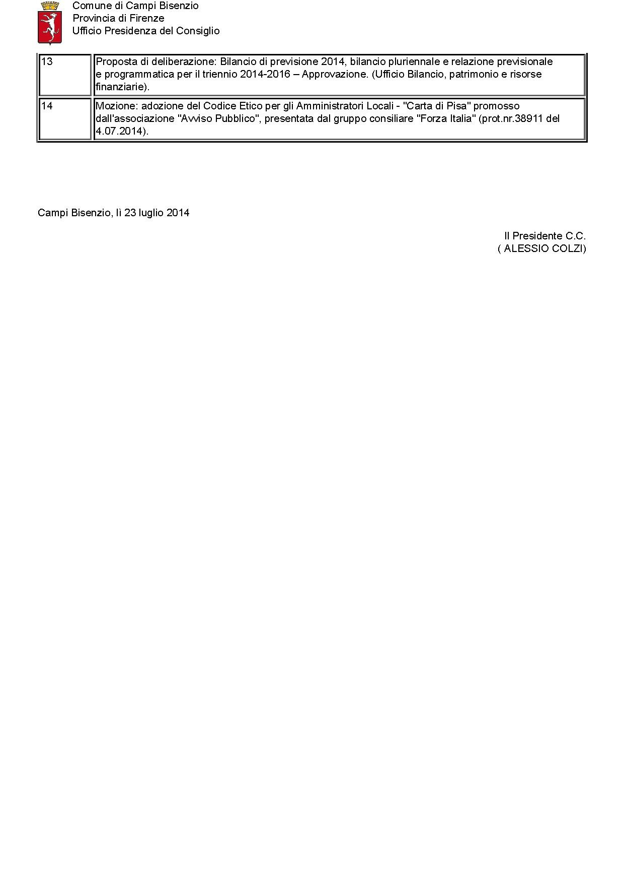 Comune di Campi Bisenzio - Consiglio comunale - Assemblea del 29 luglio 2014