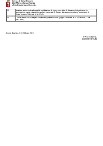 Comune di Campi Bisenzio - Convocazione in seduta ordinaria del CONSIGLIO COMUNALE per il giorno MARTEDI' 09 FEBBRAIO 2016 alle ore 17:00 - ORDINE DEL GIORNO: