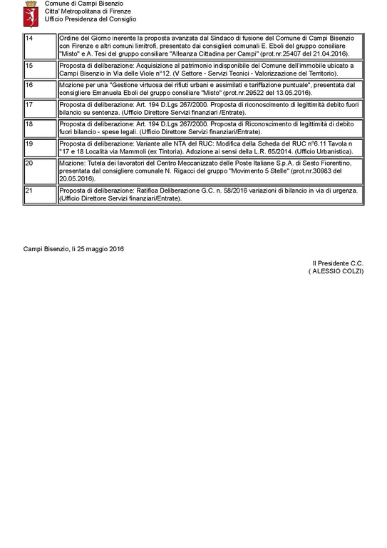 attuale06:27, 22 lug 2016Miniatura della versione delle 06:27, 22 lug 20161 240 × 1 753, 2 pagine (58 KB)Niccolo Rigacci (discussione | contributi)CONSIGLIO COMUNALE ORDINE DEL GIORNO: martedi' 31 maggio 2016 ore 16:00