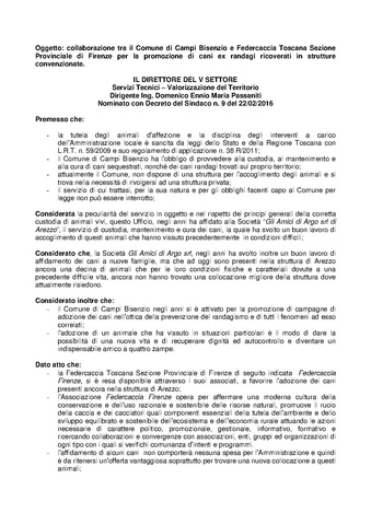 Comune di Campi Bisenzio - DETERMINAZIONE N. 457 DEL 2016-07-14 - collaborazione tra il Comune di Campi Bisenzio e Federcaccia Toscana Sezione Provinciale di Firenze per la promozione di cani ex randagi ricoverati in strutture convenzionate.