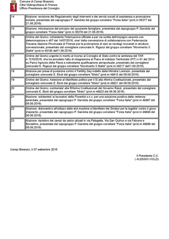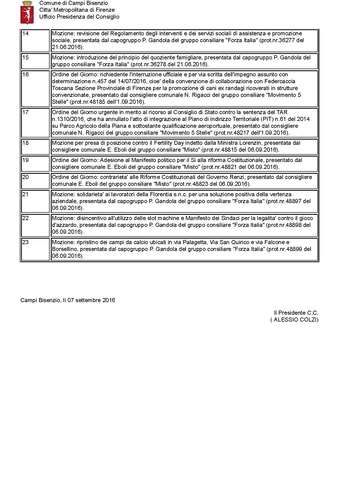 attuale17:43, 27 set 2016Miniatura della versione delle 17:43, 27 set 20161 240 × 1 753, 2 pagine (59 KB)Niccolo Rigacci (discussione | contributi)Convocazione in seduta ordinaria del CONSIGLIO COMUNALE per il giorno MARTEDI' 13 SETTEMBRE 2016 alle ore 16:00 - ORDINE DEL GIORNO