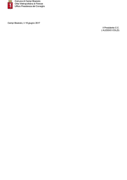 Il Consiglio Comunale di Campi Bisenzio è convocato per il giorno GIOVEDI' 22 GIUGNO 2017 alle ore 17:00 - ORDINE DEL GIORNO
