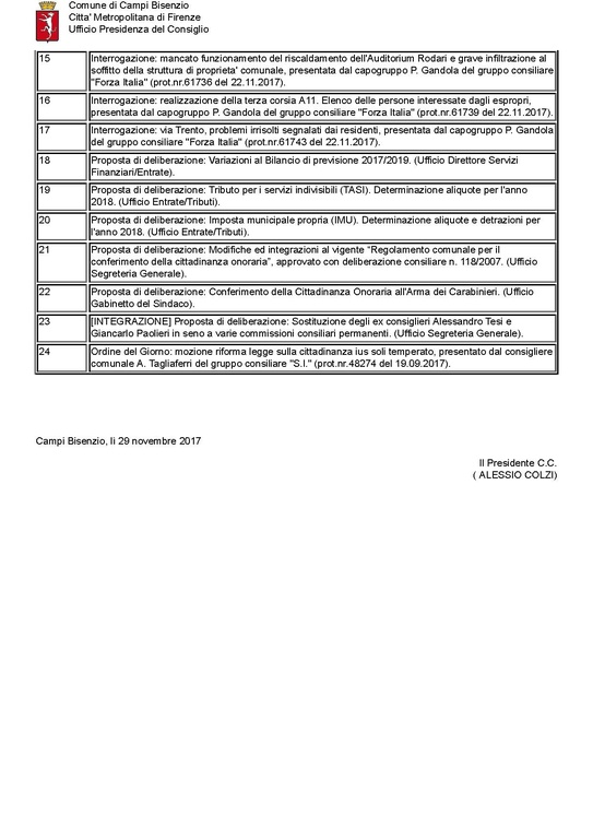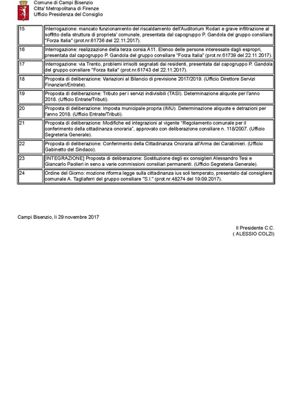 attuale16:58, 7 feb 2018Miniatura della versione delle 16:58, 7 feb 20181 240 × 1 753, 2 pagine (58 KB)Niccolo Rigacci (discussione | contributi)Convocazione in seduta pubblica del CONSIGLIO COMUNALE per il giorno GIOVEDI' 30 NOVEMBRE 2017 alle ore 17:00 - ORDINE DEL GIORNO