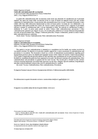 Gallo G, Rosanna Mel R, Rota MC (Ed.). - Guida alle controindicazioni alle vaccinazioni. - Roma: Istituto Superiore di Sanità; 2009. (Rapporti ISTISAN 09/13).