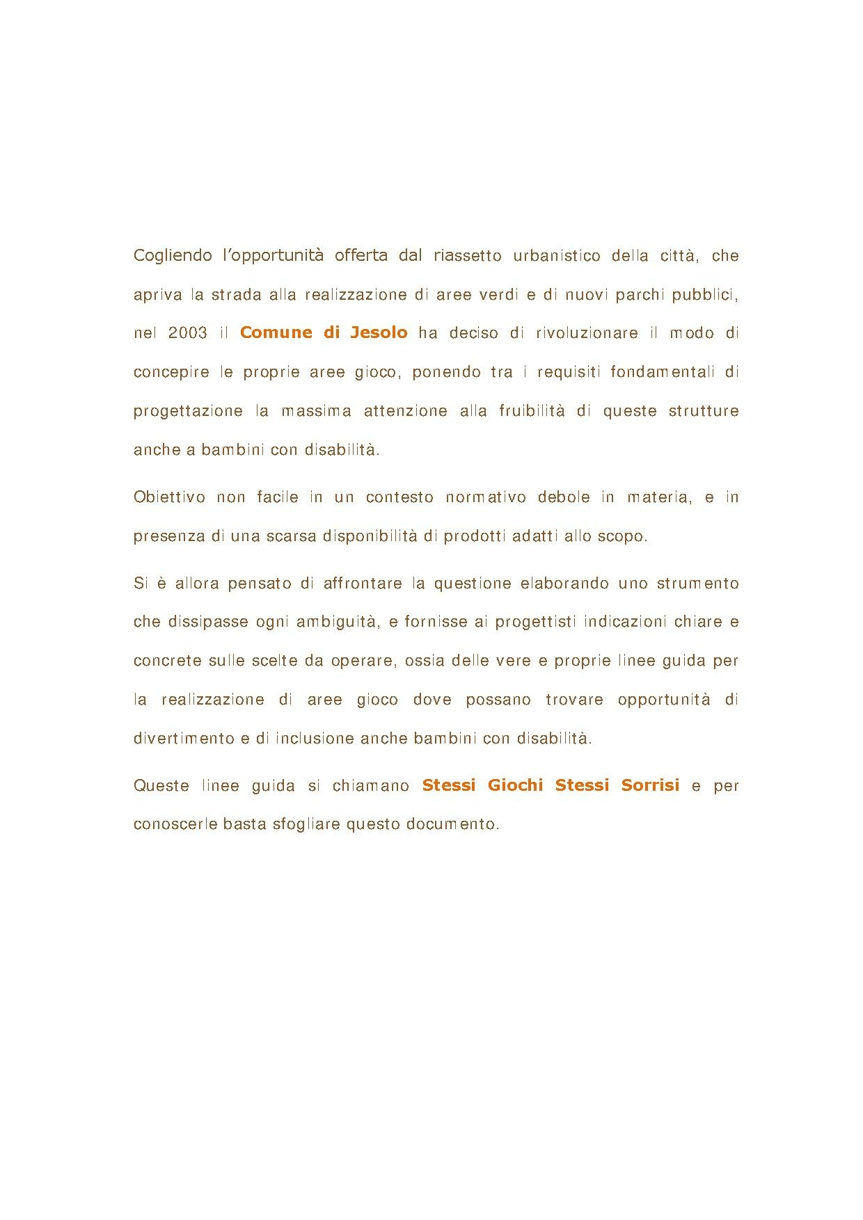 attuale06:29, 28 set 2017Miniatura della versione delle 06:29, 28 set 20171 240 × 1 754, 33 pagine (3,14 MB)Niccolo Rigacci (discussione | contributi)Città di Jesolo: linee guida “Stessi Giochi Stessi Sorrisi” - La nostra idea di “Parco giochi inclusivo” Categoria:Disabilità