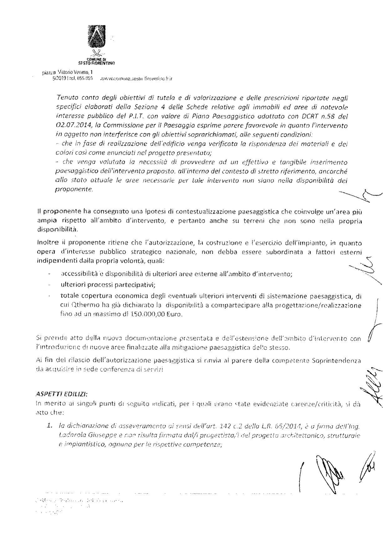 Progetto per la realizzazione e gestione di un impianto di incenerimento rifiuti non pericolosi con recupero energentico, Comune di Sesto Fiorentino, Loc. Case Passerini - Conferenza dei Servizi - Verbale della seduta del 6 agosto 2015