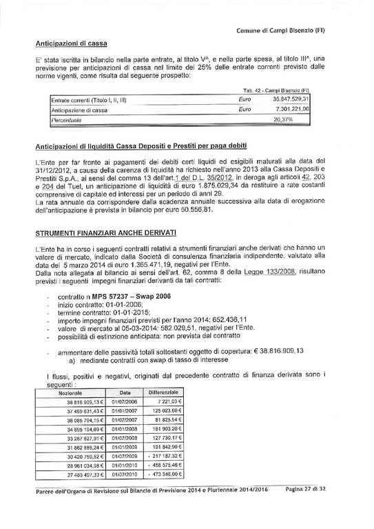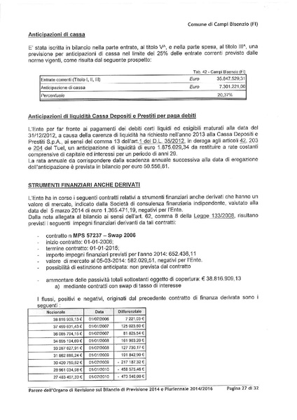 Comune di Campi Bisenzio - Parere dell'Organo di Revisione sulla proposta di bilancio di previsione 2014 e documenti allegati