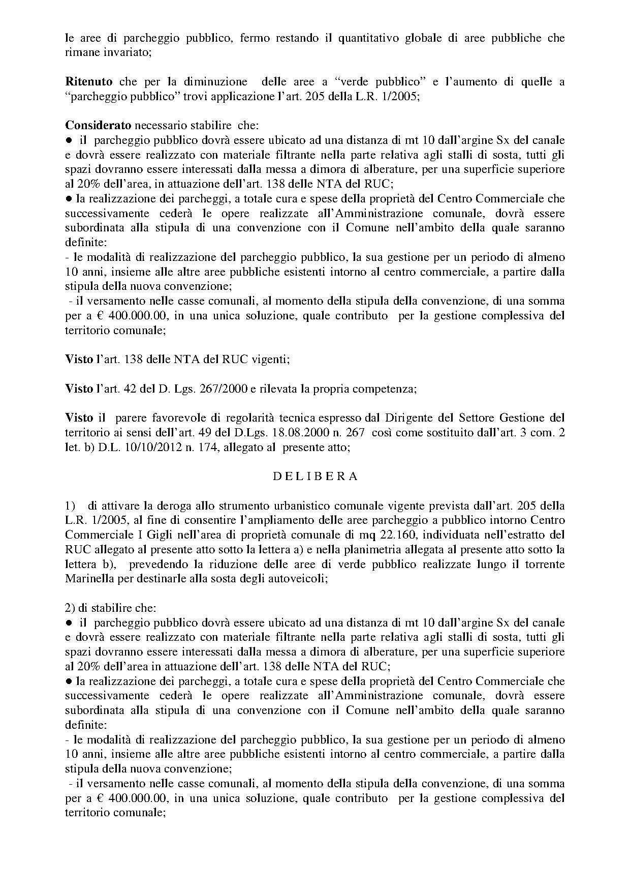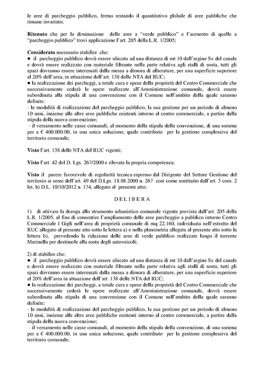 attuale15:44, 2 set 2015Miniatura della versione delle 15:44, 2 set 20151 240 × 1 753, 7 pagine (72 KB)Niccolo Rigacci (discussione | contributi)COMUNE DI CAMPI BISENZIO - DELIBERAZIONE DEL CONSIGLIO COMUNALE N. 63 DEL 11/04/2013 - Realizzazione di ulteriori aree di sosta a servizio del centro Commerciale i Gigli. Deroga ai sensi dell’art. 205 della L.R.1/2005.