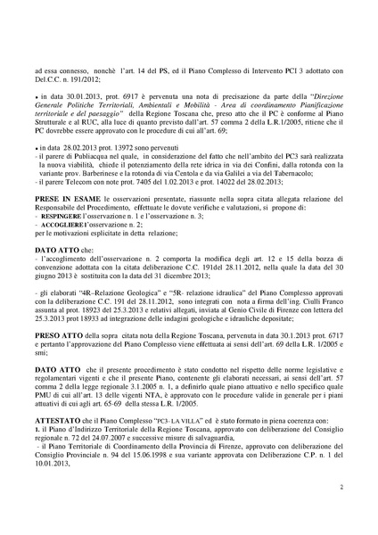 COMUNE DI CAMPI BISENZIO - DELIBERAZIONE DEL CONSIGLIO COMUNALE N. 64 DEL 11/04/2013 - Piano complesso d'intervento “ PC3 - La Villa” - Via del Tabernacolo. Approvazione con controdeduzioni.