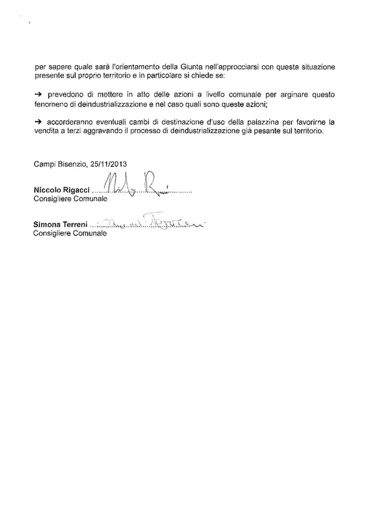 | attuale | 21:13, 13 dic 2013 | 1 240 × 1 753, 7 pagine (129 KB) | Niccolo Rigacci (discussione | contributi) | DELIBERAZIONE DEL CONSIGLIO COMUNALE N. 144 DEL 26/11/2013 - Quesiti a risposta immediata. http://www.comune.campi-bisenzio.fi.it/flex/atti/cc/2013/00010620_01_00164249.pdf |