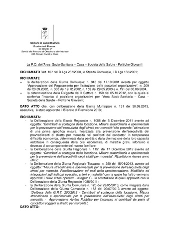 Comune di Campi Bisenzio - DETERMINAZIONE N. 157 DEL 2013-12-12 - Delibera GRT 1088/2011 e G.C.. Misura sperimentale prevenzione degli sfratti. Concessione contributo.