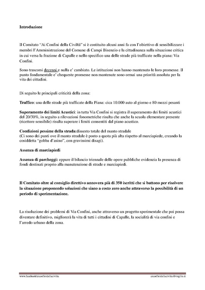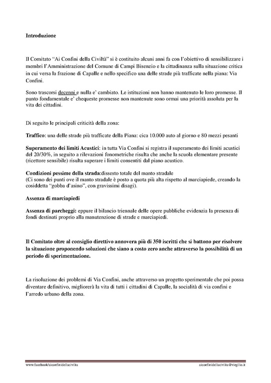 Progetto del senso unico in via dei Confini - A cura del comitato Confini Della Civiltà.