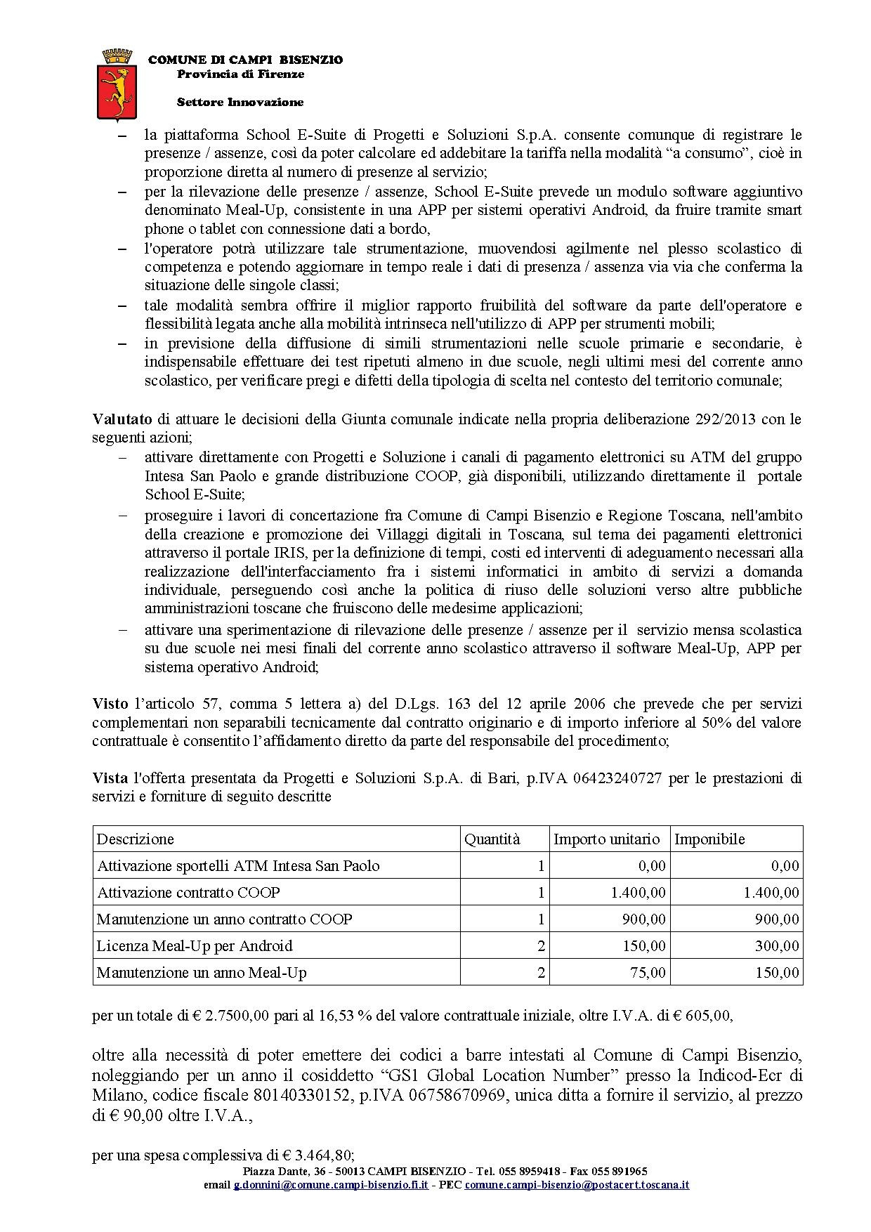 Comune di Campi Bisenzio - DETERMINAZIONE N. 3 DEL 2014-02-18 - Acquisto di servizi complementari per l'attivazione di canali di pagamento elettronico dei servizia domanda individuale e per la rilevazione sperimentale delle presenze / assenze al servizio mensa presso le scuole. Impegno di spesa. CIG Z9F0DEA25D e Z640DEA41C.