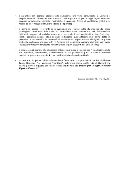 Comune di Campi Bisenzio - Consiglio Comunale - 25 febbraio 2014 - Ordine del giorno per una proposta di moratoria e di incentivo alla dissuasione dell’installazione e del gioco delle slot machine nei pubblici esercizi di Campi Bisenzio