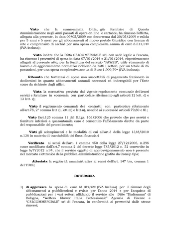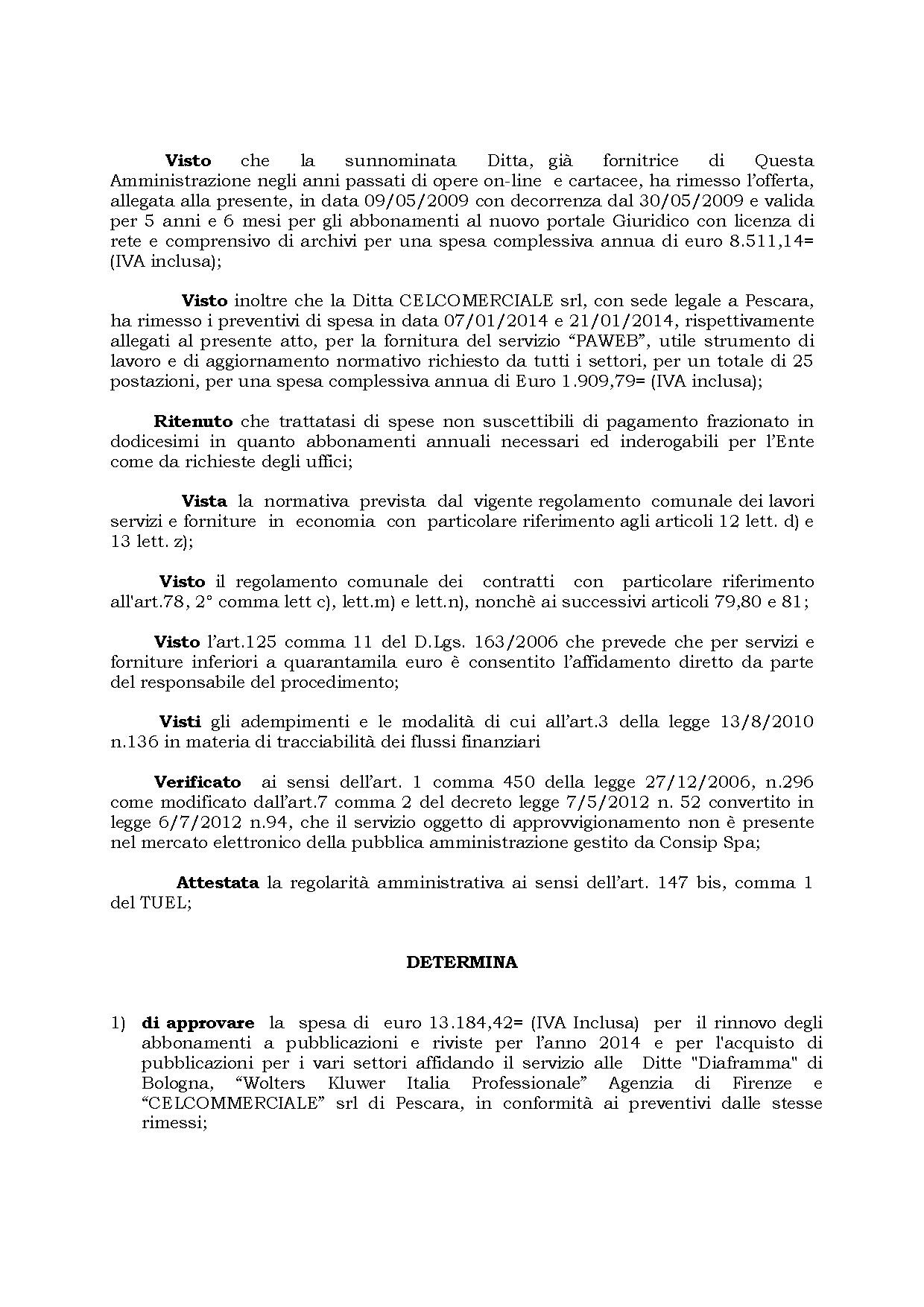 Comune di Campi Bisenzio - DETERMINAZIONE N. 6 DEL 2014-04-01 - Approvazione impegno di spesa per rinnovo abbonamenti a riviste per Biblioteca ed Uffici Comunali. Anno 2014. CIG Z4E0E64B0A.