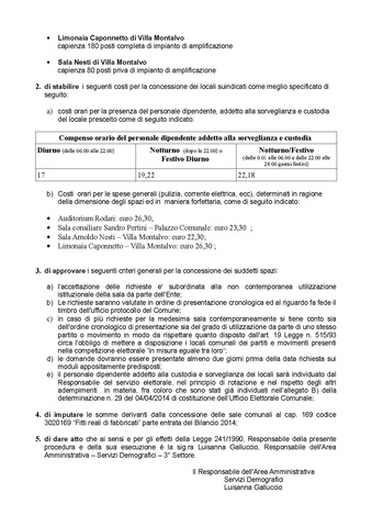 Determinazione locali e costi per la concessione di sale del Comune in occasione delle Elezioni dei membri del Parlamento Europeo spettanti all'Italia del 25 maggio 2014.