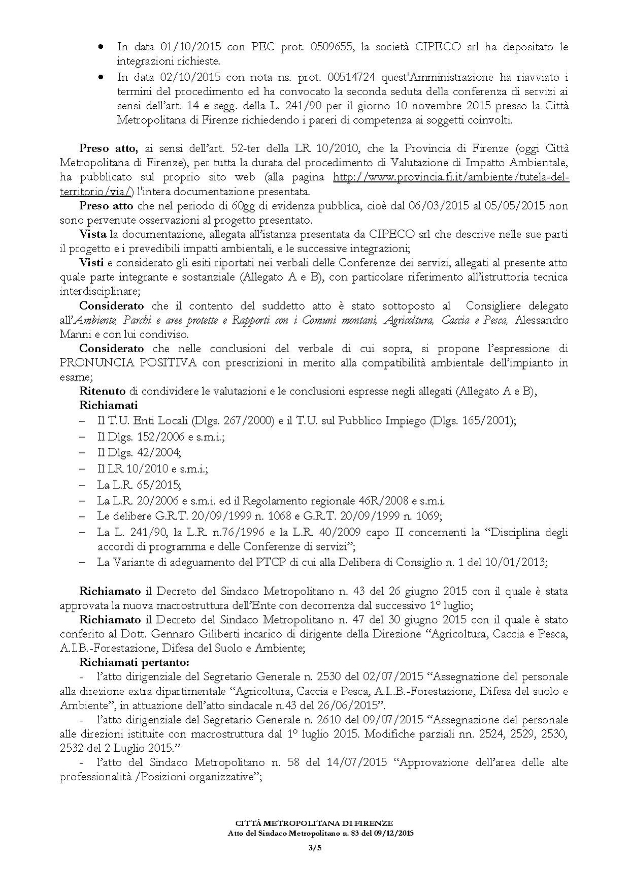 PROCEDURA DI VALUTAZIONE DI IMPATTO AMBIENTALE (VIA) AI SENSI DELL'ART. 52 E SGG. DELLA LR 10/2010 RELATIVA A: PROGETTO DEFINITIVO DI NUOVO IMPIANTO PER IL TRATTAMENTO RIFIUTI SPECIALI LIQUIDI. NUOVO STABILIMENTO IN LOC. CAPALLE COMUNE DI CAMPI BISENZIO(FI). PROPONENTE CIPECO SRL.