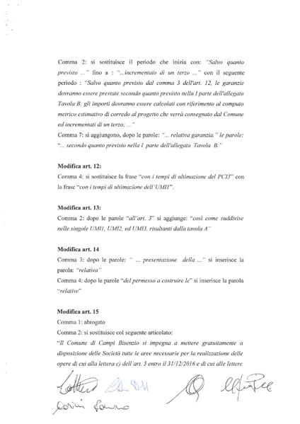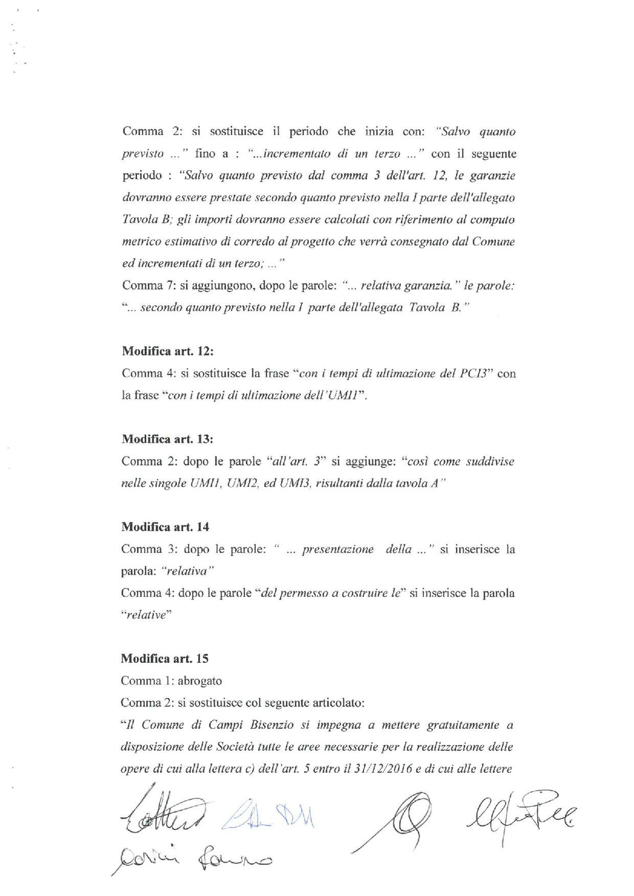 Modifiche agli artt. 3, 7, 9, 10, 11,12, 13, 14, 15, 21 dell’atto di convenzione stipulata in data 23.5.2013 con società Il Tabernacolo Costruzioni Generali srl, Casini Futura srl, Paolo e Roberto Lottini srl, e F.lli Lottini snc per l’attuazione del Piano Complesso di Intervento PCI 3 – La Villa, siccome integrata con atto stipulato in data 12/06/2014 rep. 156826 rogito Notaio De Luca.