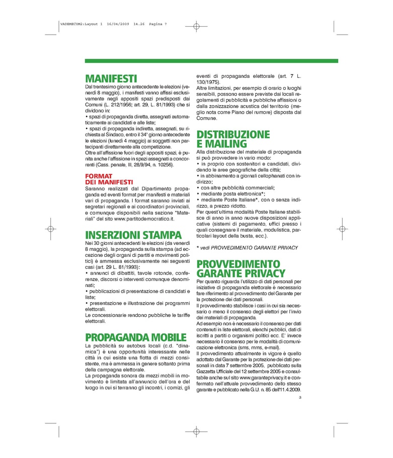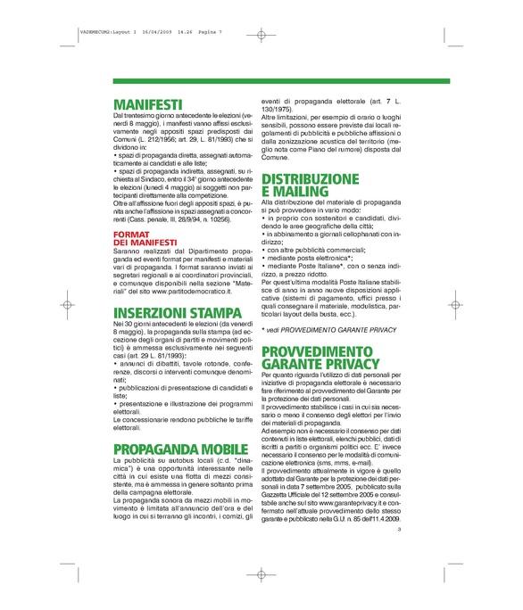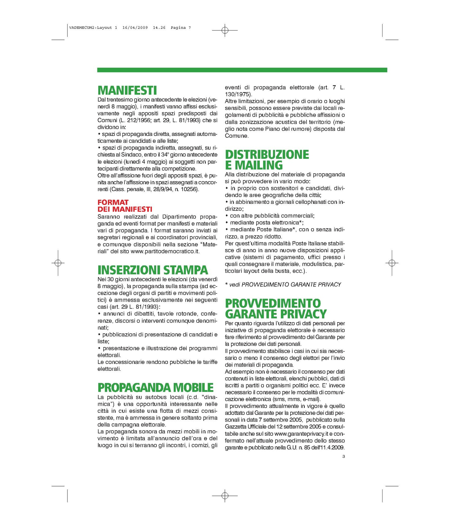 Vademecum propaganda elettorale per elezioni europee e amministrative 2009