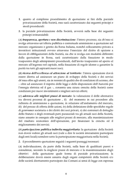 Proposta di deliberazione: Processo di parziale privatizzazione della societa' E.S.TR.A., Energia Servizi Territorio Ambiente S.P.A. Attraverso quotazione, nonche'fissazione dei principi relativi al processo, alla formazione del prezzo di vendita delle azioni, nonche' ai principi relativi alle modifiche allo Statuto: delibera di indirizzo. (Ufficio Rapporti con le societa' partecipate).