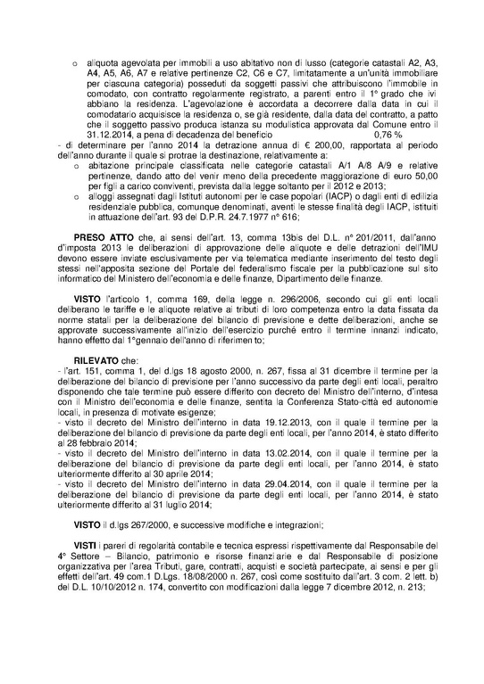 Comune di Campi Bisenzio - DELIBERAZIONE N. 69 DEL 2014-05-20 - Imposta Municipale Propria (IMU). Determinazione aliquote e detrazioni per l'anno 2014.