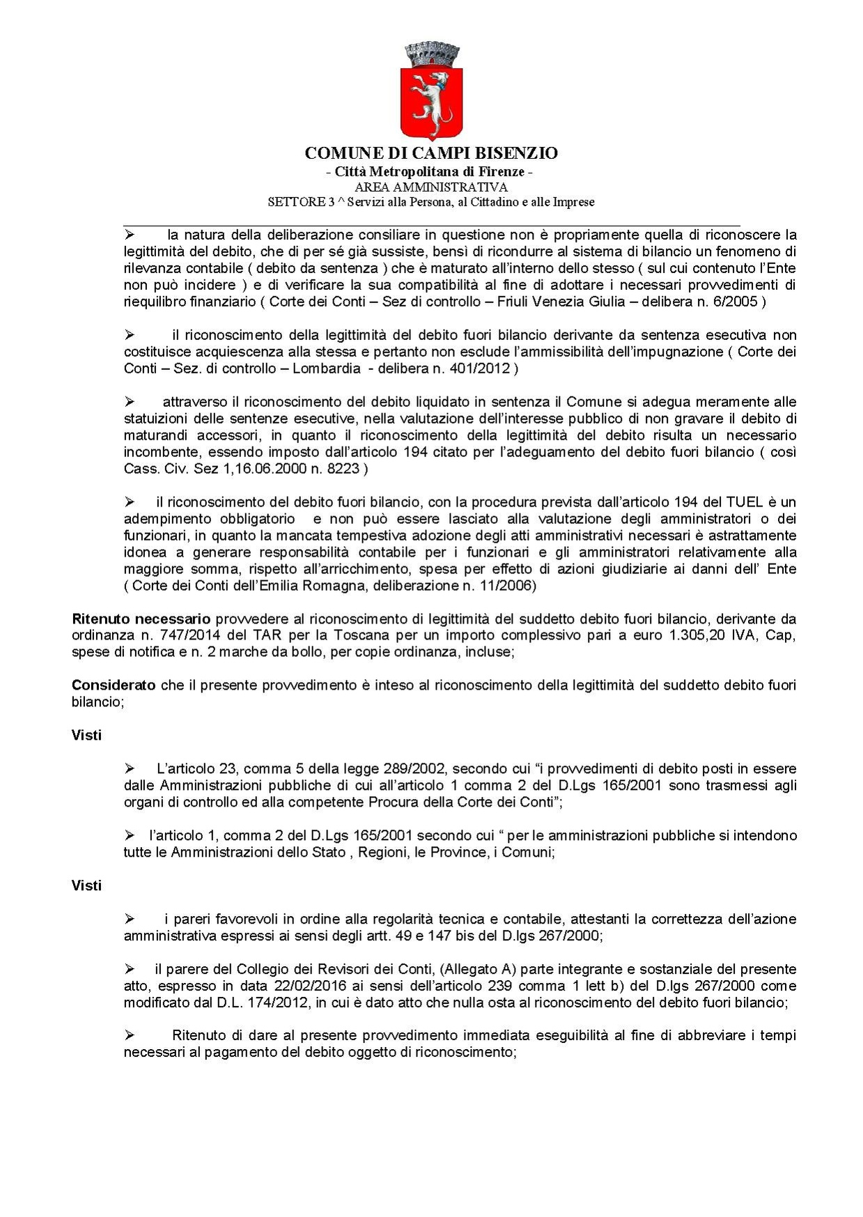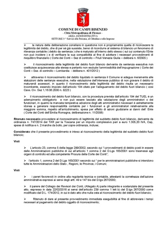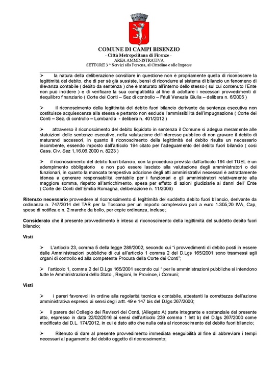 | attuale | 12:28, 25 mar 2016 | 1 239 × 1 747, 5 pagine (141 KB) | Niccolo Rigacci (discussione | contributi) | Art. 194 D.Lgs 267/2000. Riconoscimento di legittimità di debito fuori bilancio derivante da ordinanza del T.A.R per la Toscana n. 747/2014. Consiglio Comunale del 23 marzo 2016 Categoria:Delibere Categoria:Sicurezza [[Categoria:Debiti fuori... |