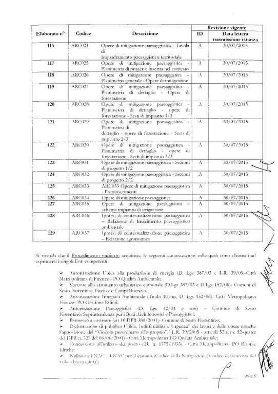 Progetto per la realizzazione e gestione di un impianto di incenerimento rifiuti non pericolosi con recupero energentico, Comune di Sesto Fiorentino, Loc. Case Passerini - Conferenza dei Servizi - Verbale della seduta del 6 agosto 2015