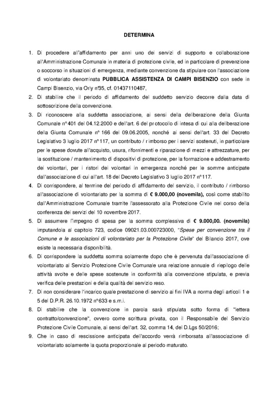 Comune di Campi Bisenzio - DETERMINAZIONE N. 903 DEL 2017-11-20 - Affidamento dell'attivita di supporto alla Protezione Civile all'associazione di volontariato Pubblica Assistenza di Campi Bisenzio