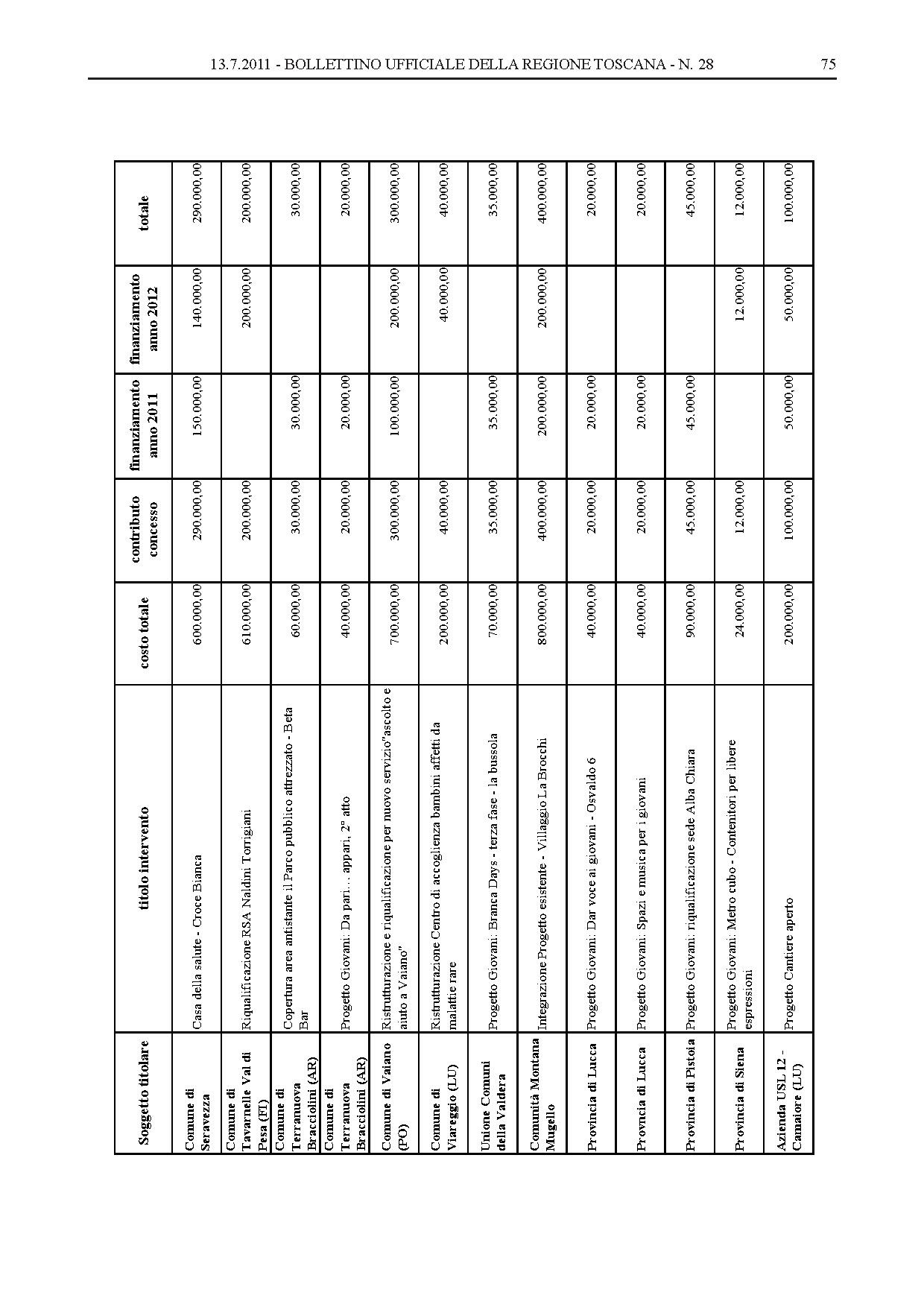 Bollettino Ufficiale della Regione Toscana n.28 del 13 luglio 2011 - Contributi al Centro Spazio Reale per 6.000.000 di euro.