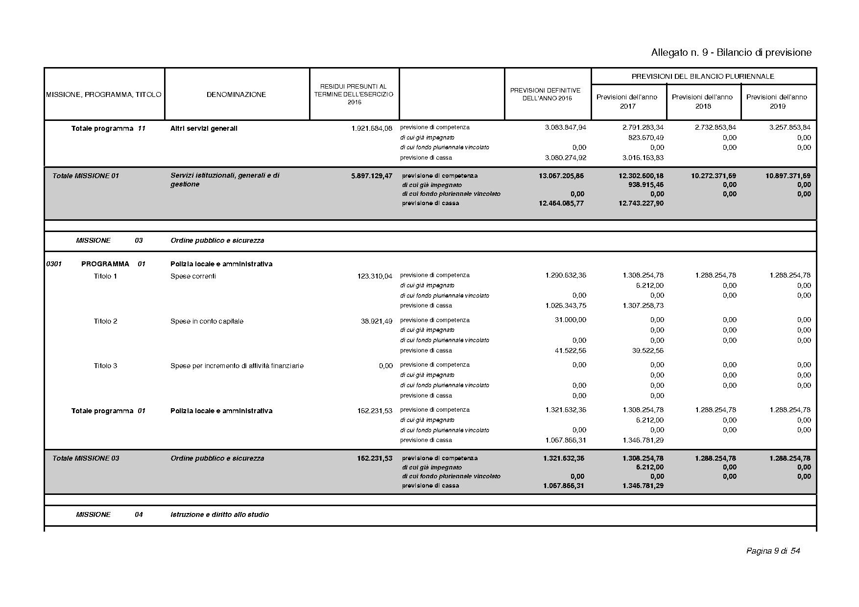BILANCIO DI PREVISIONE ENTRATE / SPESE Allegato n. 9 − Bilancio di previsione al D.Lgs 118/2011