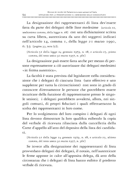 Elezione dei membri del Parlamento europeo spettanti all’Italia - Istruzioni per la presentazione e l’ammissione delle candidature
