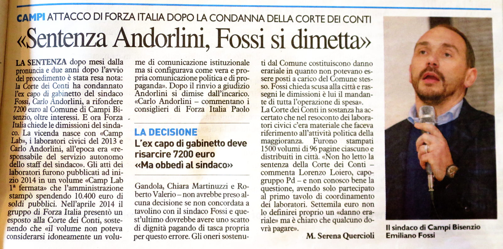 Pare che la Corte dei Conti abbia preso in considerazione questi esposti, visto che nell'ottobre del 2015 ha chiamato Carlo Andorlini (l'allora capo di Gabinetto del sindaco) a rendere conto dei fatti, come risulta da questo articolo su La Nazione. Nel maggio del 2016 si apprende dalla stampa che la Corte dei Conti ha condannato Andorlini a rifondere 7.200 euro al Comune