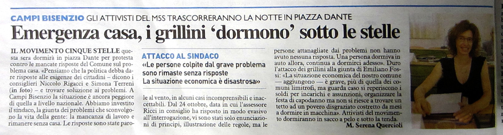 - Emergenza casa, i grillini 'dormono' sotto le stelle - La Nazione, 28 gennaio 2014