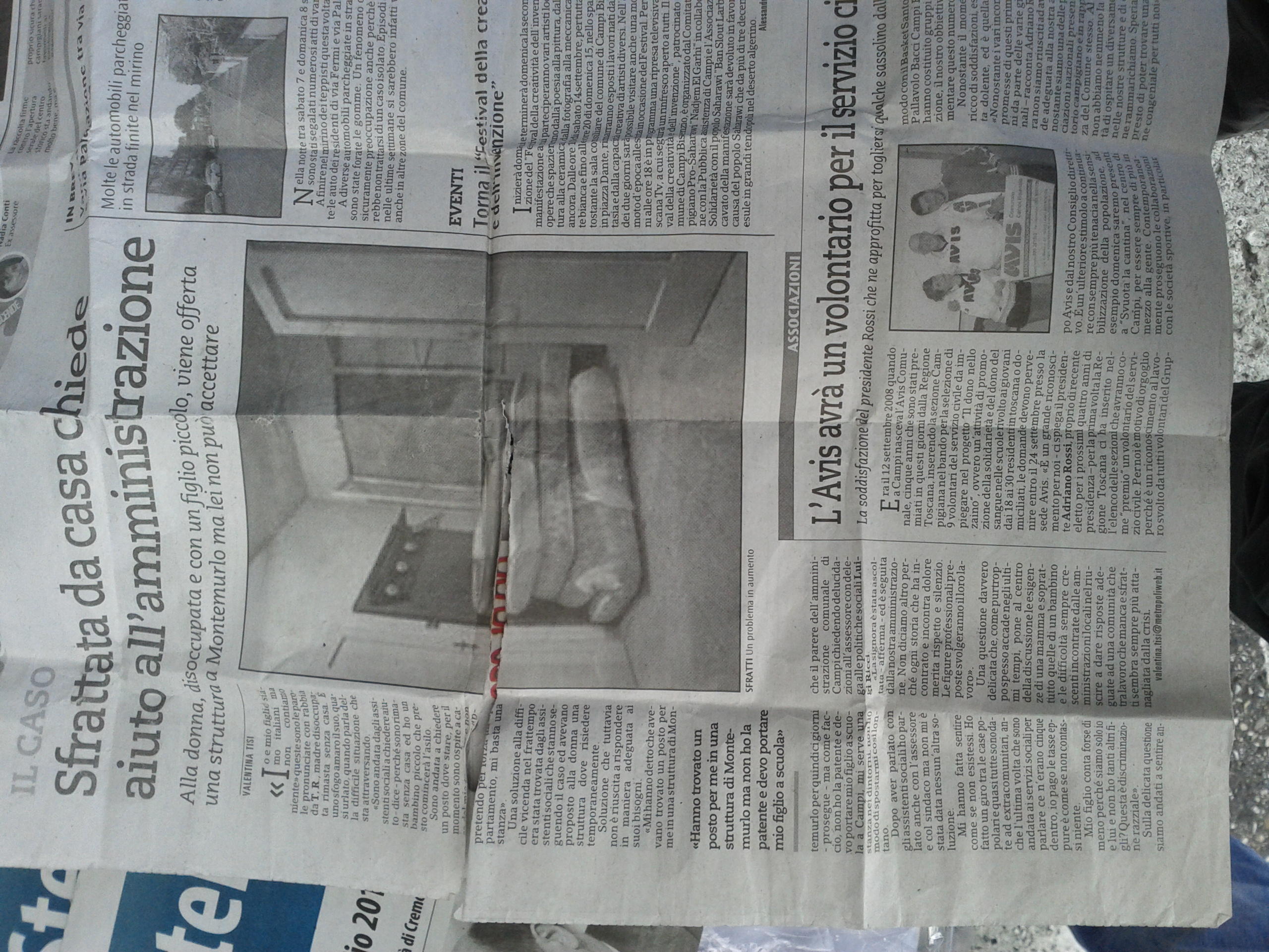- Sfrattata da casa chiede aiuto all'amministrazione (Metropoli, 13 settembre 2013)