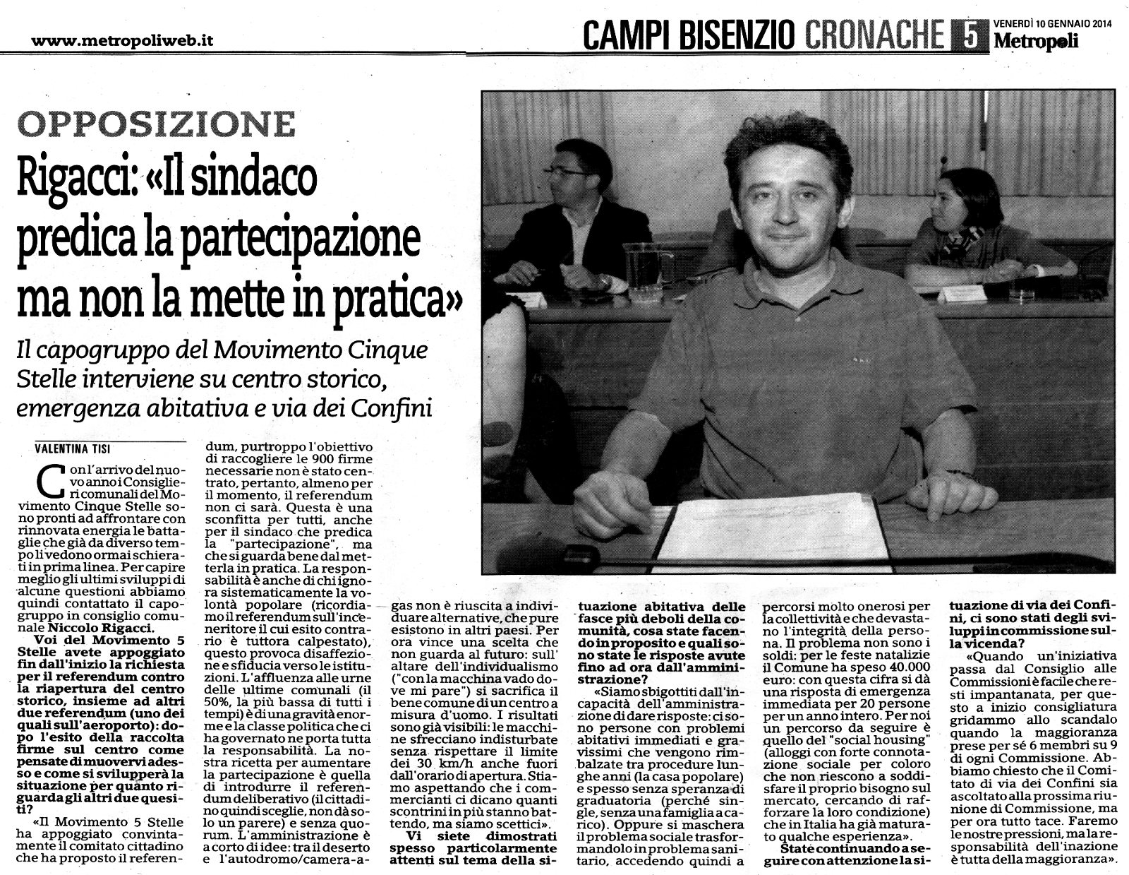 - Rigacci: "Il sindaco predica la partecipazione ma non la mette in pratica" - Metropoli, 10 gennaio 2014