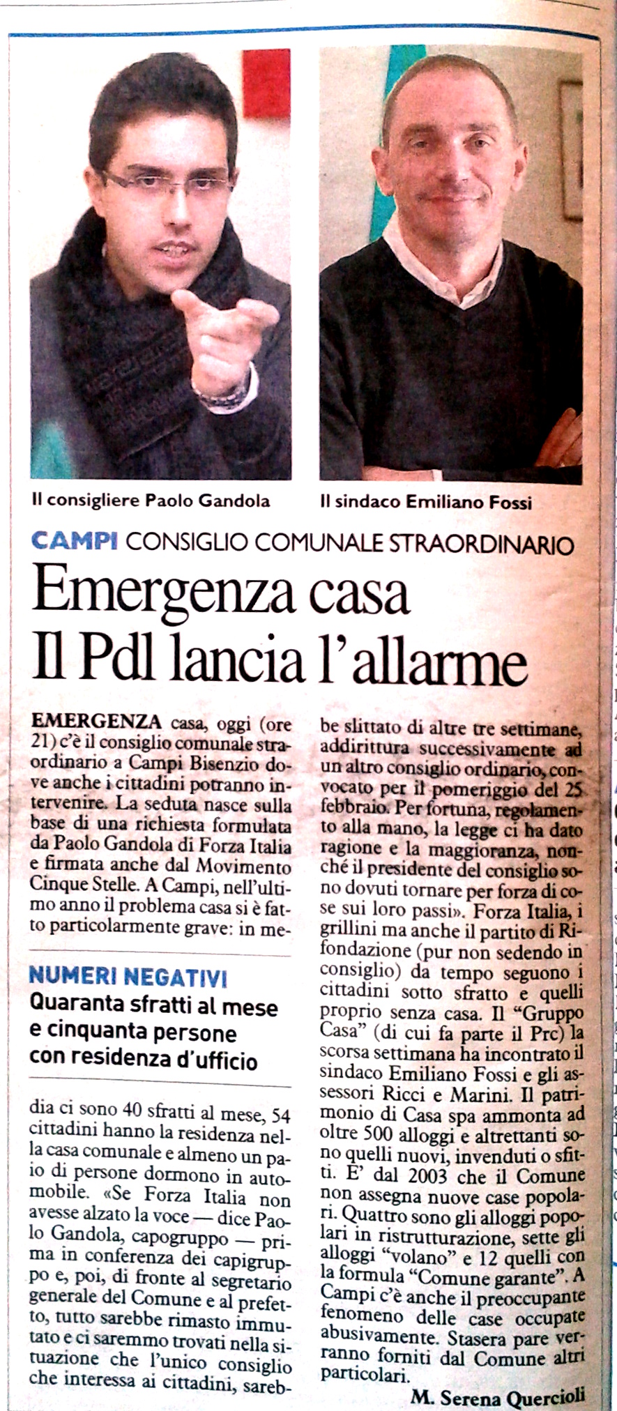 - Emergenza casa Il Pdl lancia l'allarme - La Nazione, 25 febbraio 2014