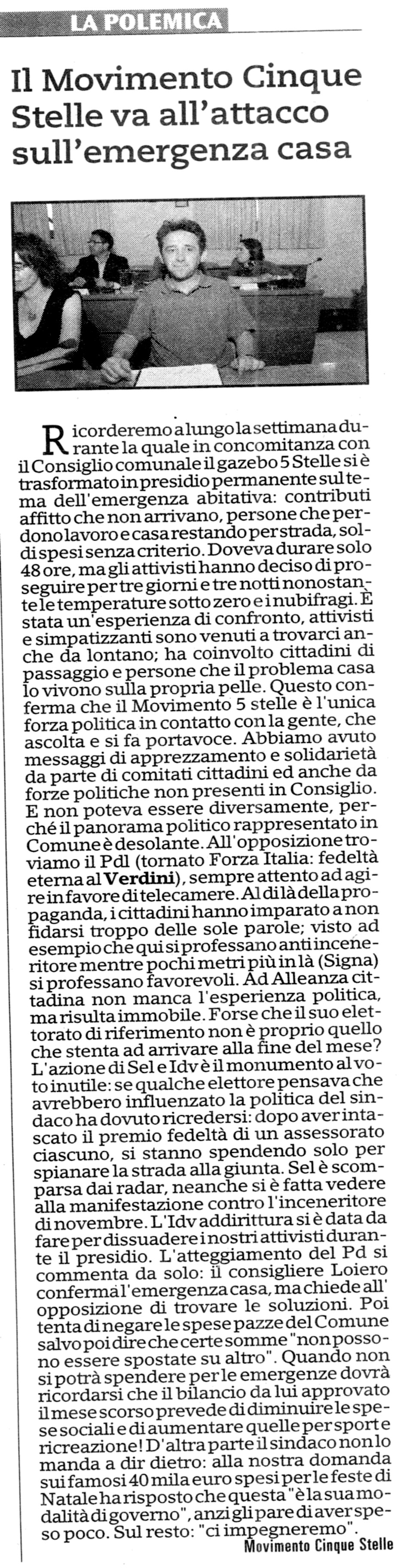 - M5S: "Priorità alla casa" - La Nazione - 1 febbraio 2014