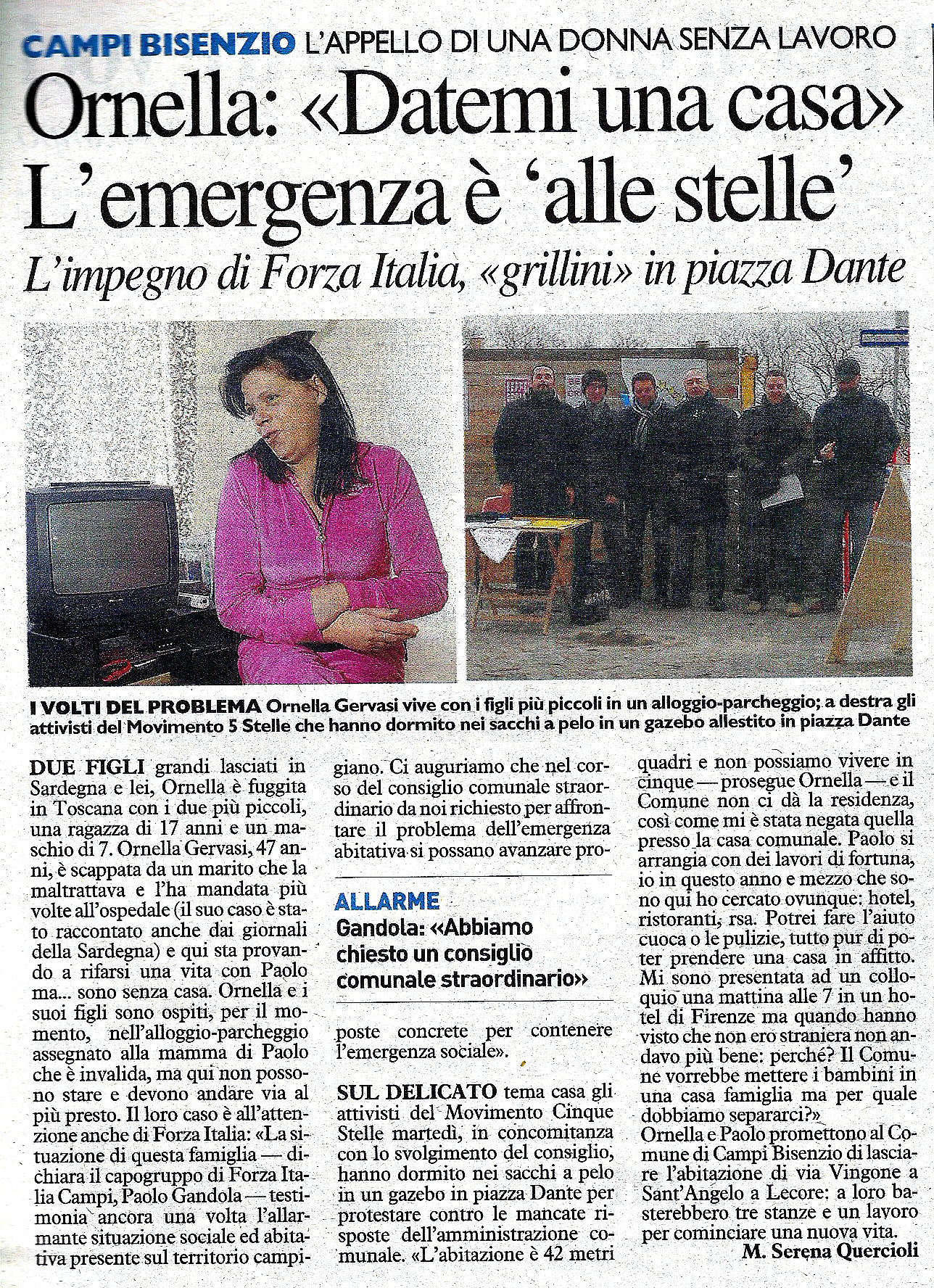 - Ornella: "Datemi una casa" L'emergenza è alle stelle - La Nazione, 30 gennaio 2014