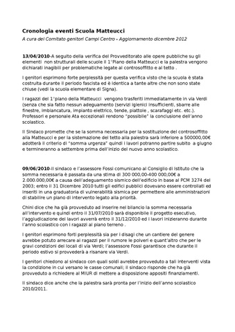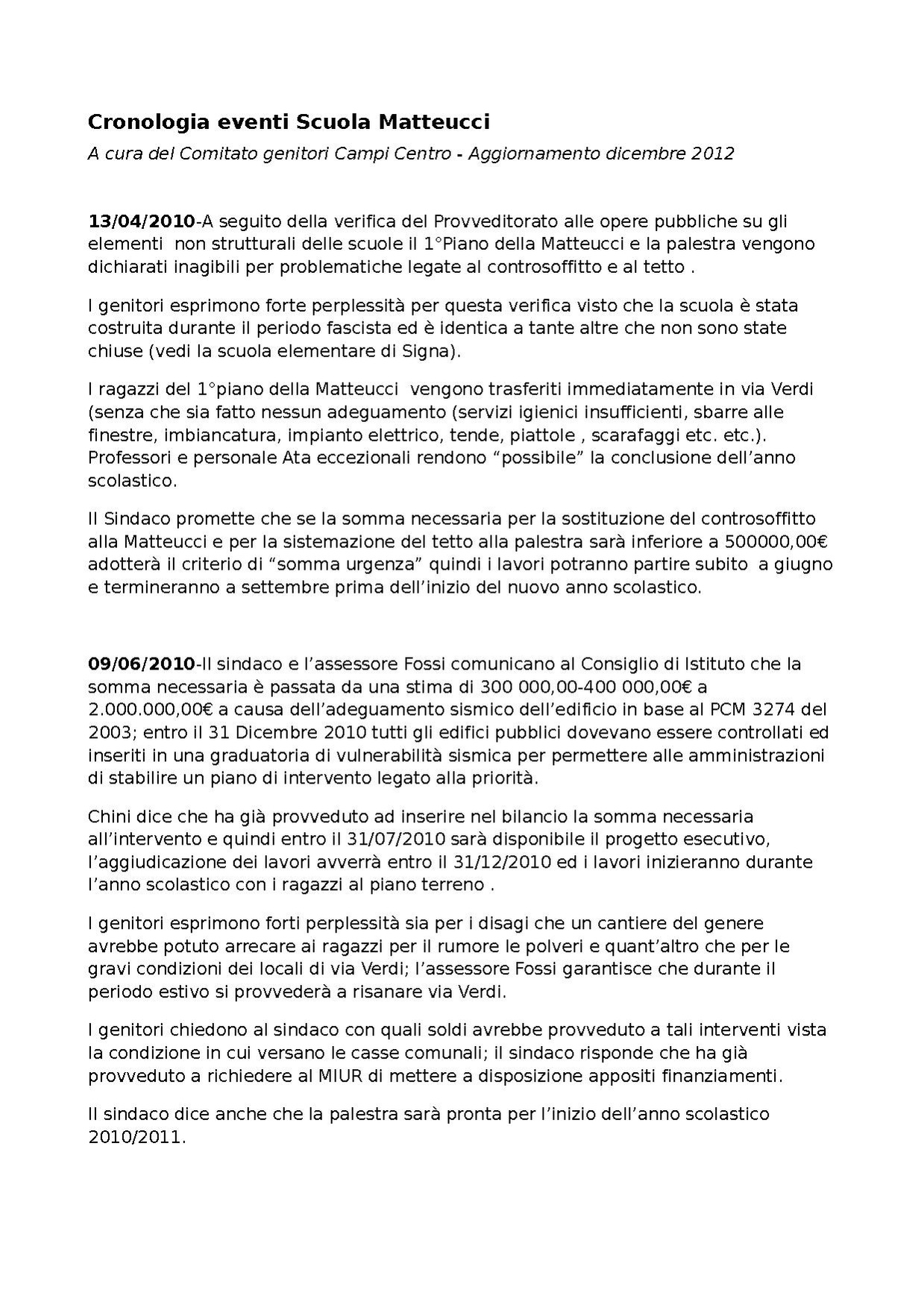 Cronologia eventi Scuola Matteucci - A cura del Comitato genitori Campi Centro - Aggiornamento dicembre 2012